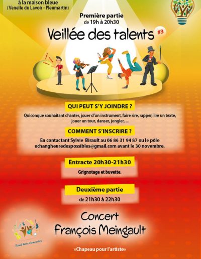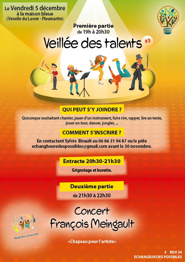 5/12 à 18h30 : « Veillée des talents » + François Meingault (chanson) (Maison bleue, venelle du lavoir)