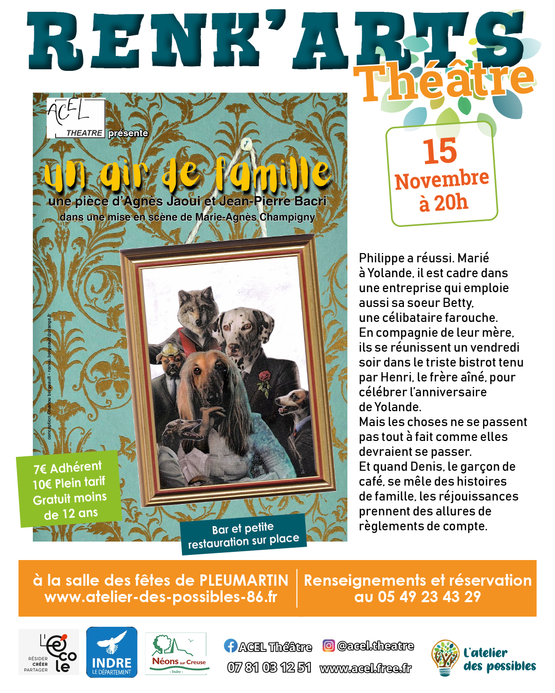 15/11 à 20h : RENK’ART Théâtre « Un air de famille » (Salle des fêtes, Pleumartin)