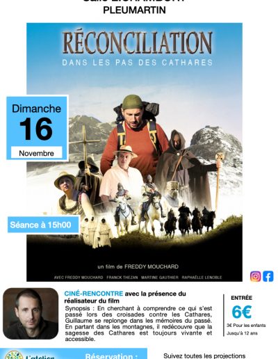 16/11 à 15h : RENK’ART Ciné rencontre « Réconciliation » (Salle des fêtes, Pleumartin)